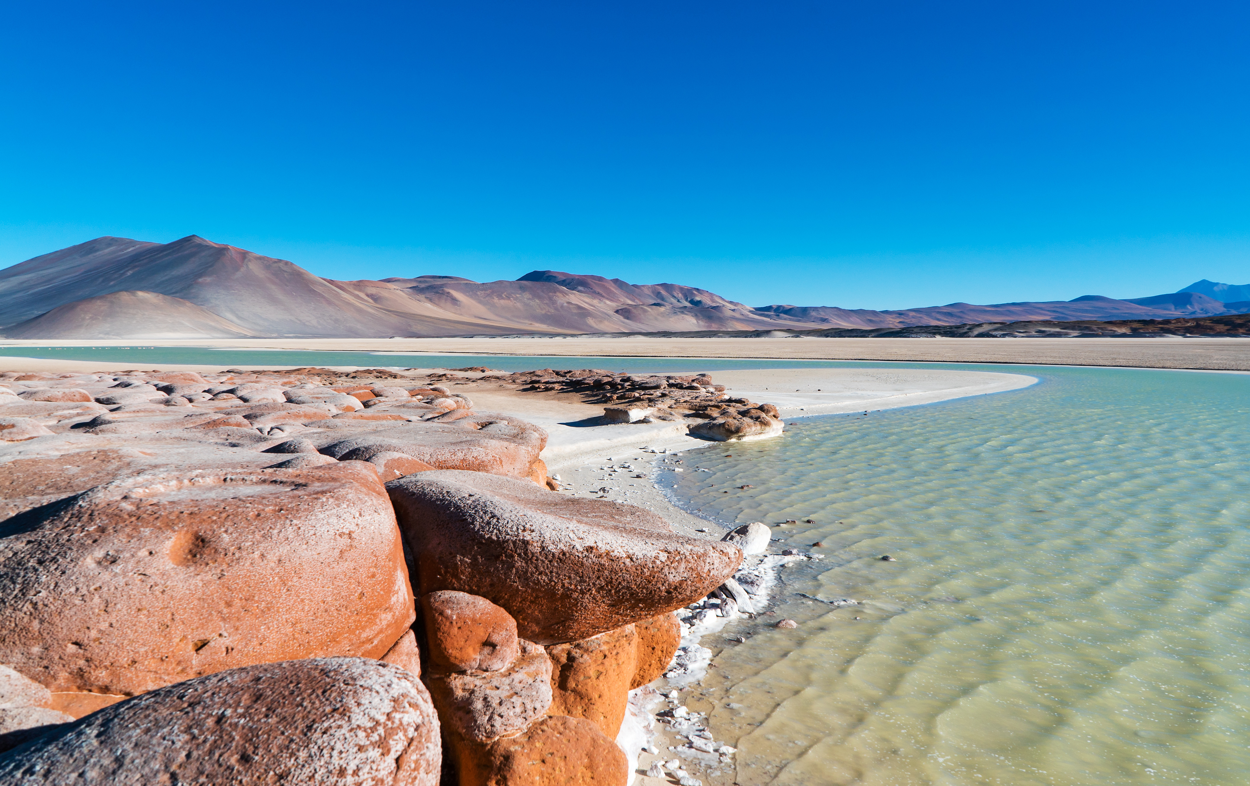 red rocks piedras rojas in atacama desert chile and salt ID: 37448 Red rocks Piedras Rojas in Atacama desert Chile and salt lagoon