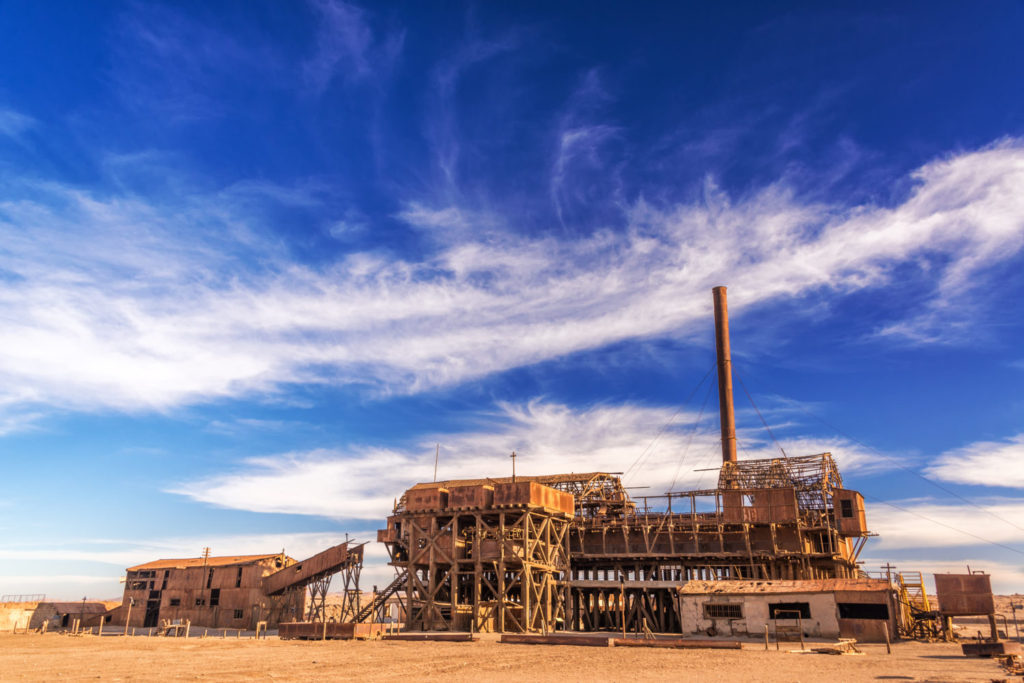 Remains of a saltpeter refinery in the UNESCO World Heritage ghost town of Santa Laura, Chile