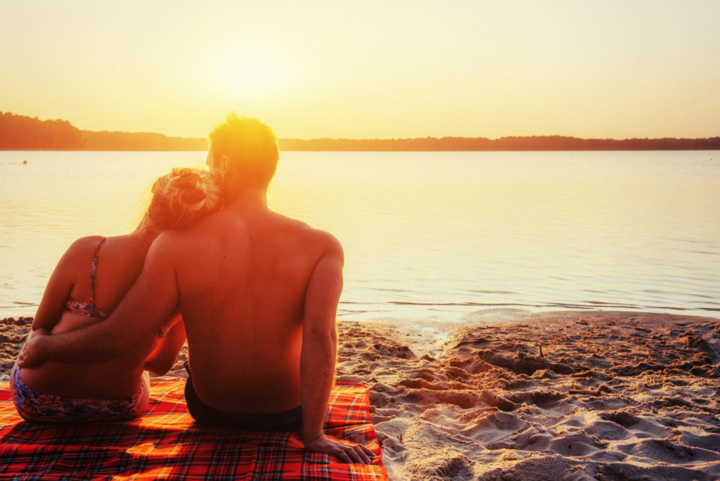 romantic couple on the beach at colorful sunset on background ID: 41300 Romantic couple on the beach at colorful sunset on background