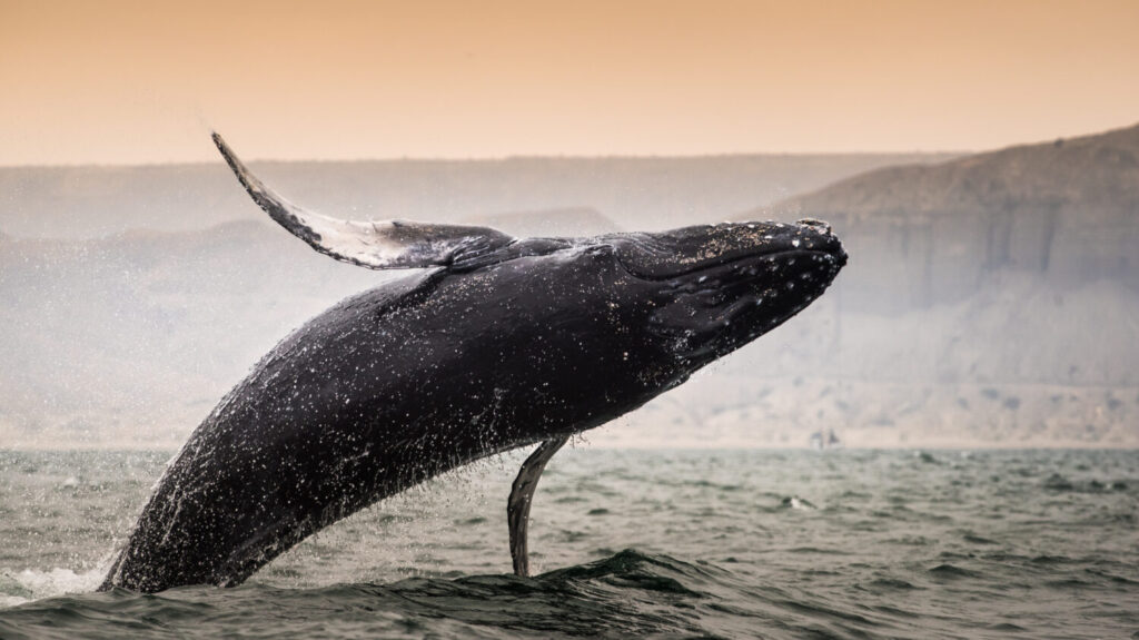 Salto de ballena jorobada en Los Organos, Piura, Perú.