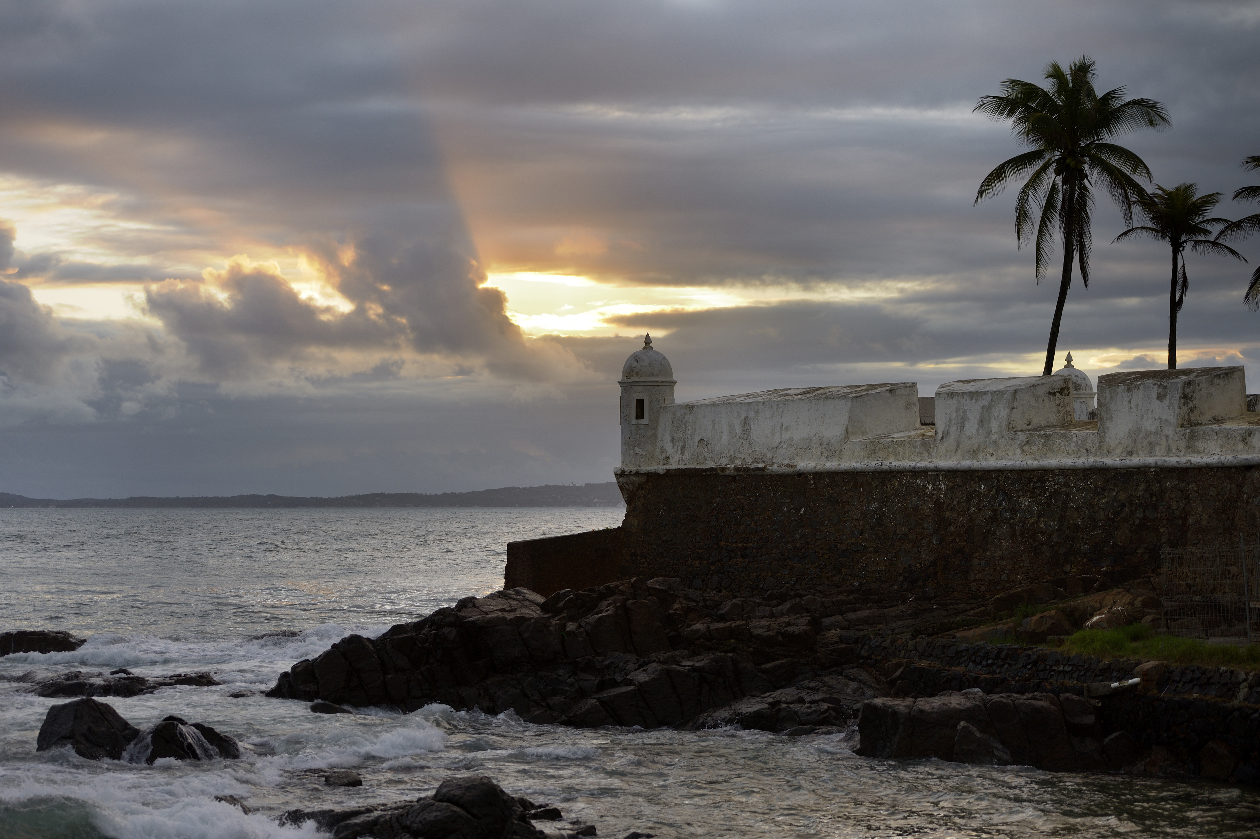 Salvador da Bahia, Barra, view to Forte Santa Maria at twilight