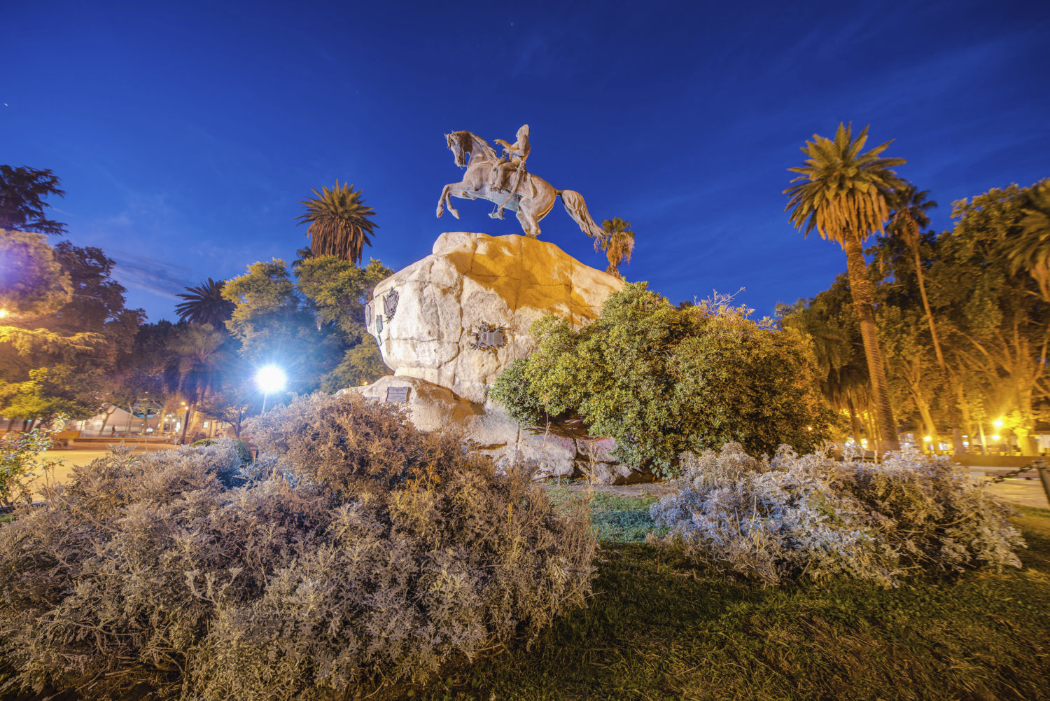 San Martin Square, one of the four smaller plazas located 2 blocks off each corner of Independence Plaza in Mendoza, Argentina.