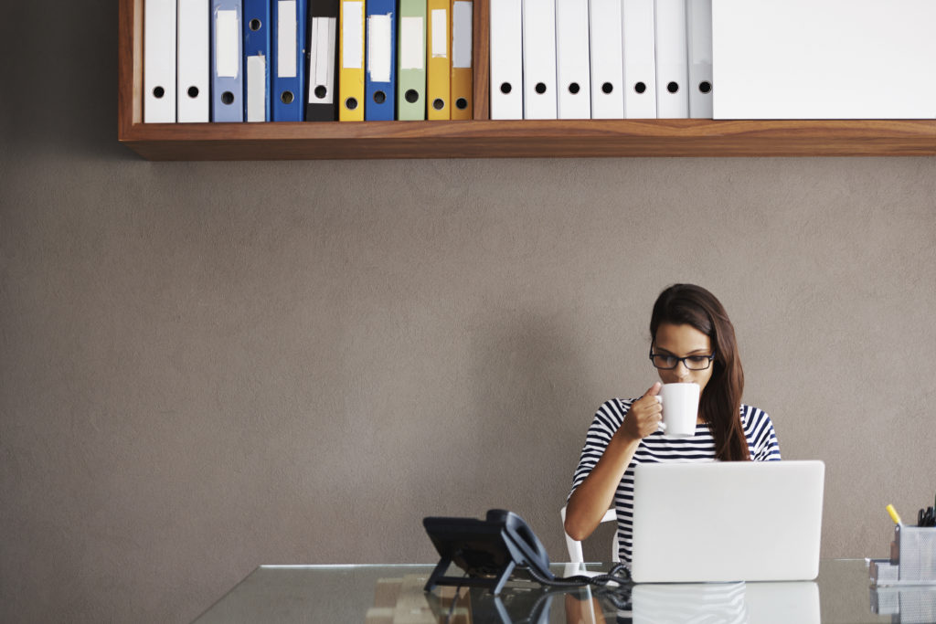 Savoring her morning coffee