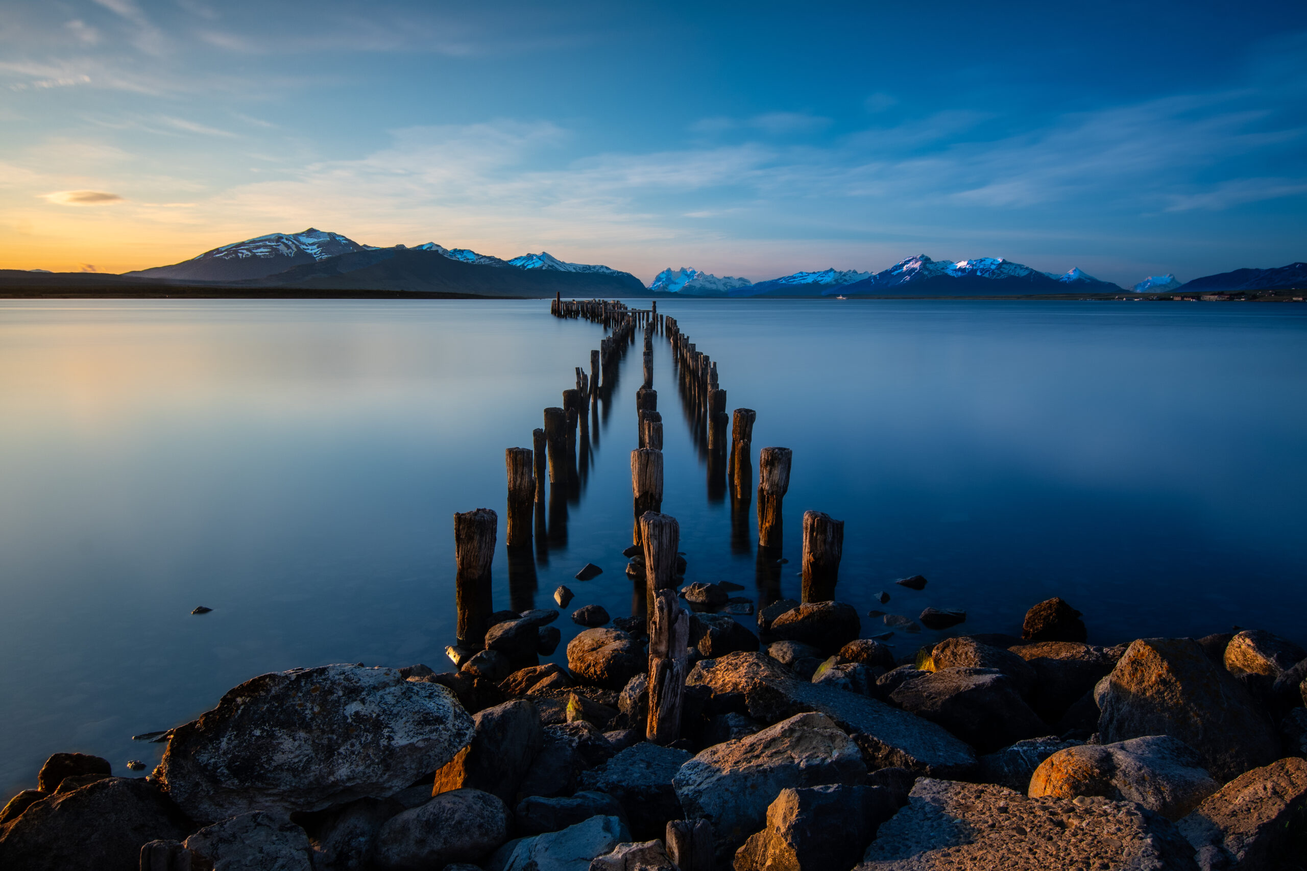 Scenic view of lake against sky at sunset,Puerto Natales,Antofagasta,Chile