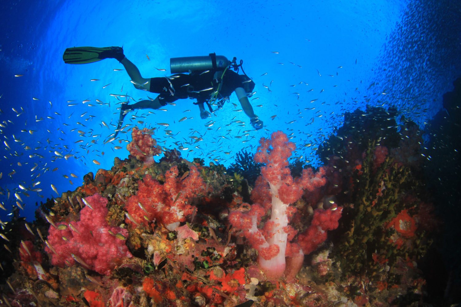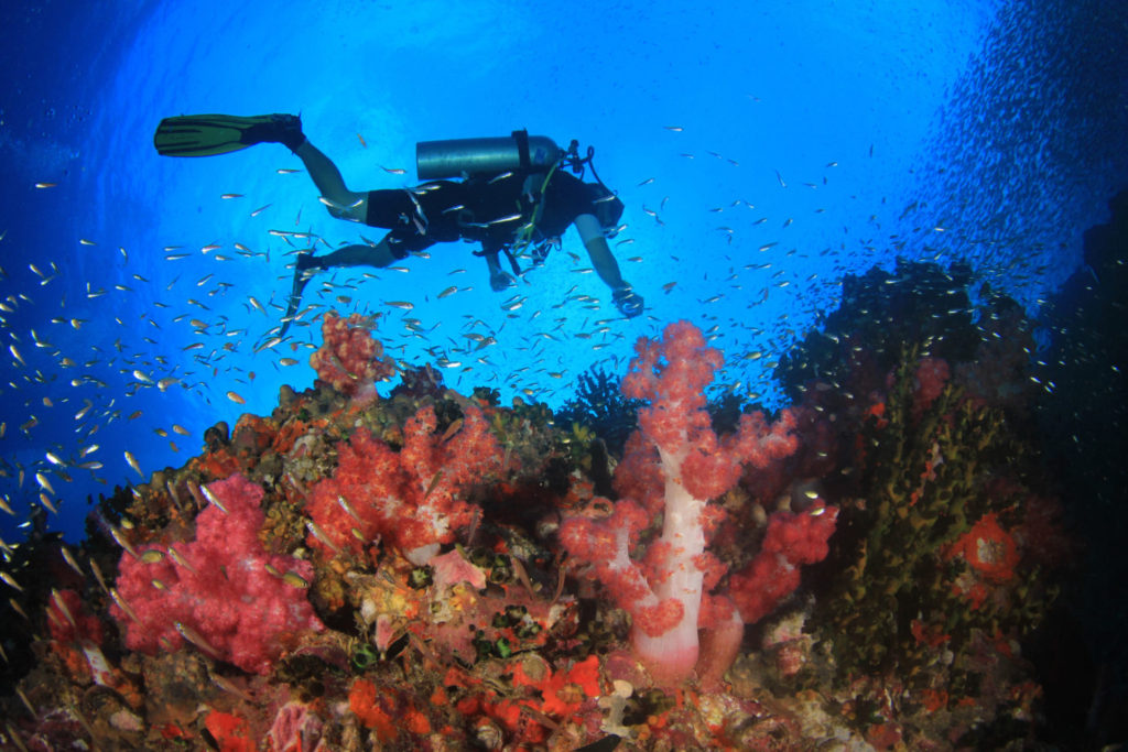 Scuba diving coral reef underwater ocean