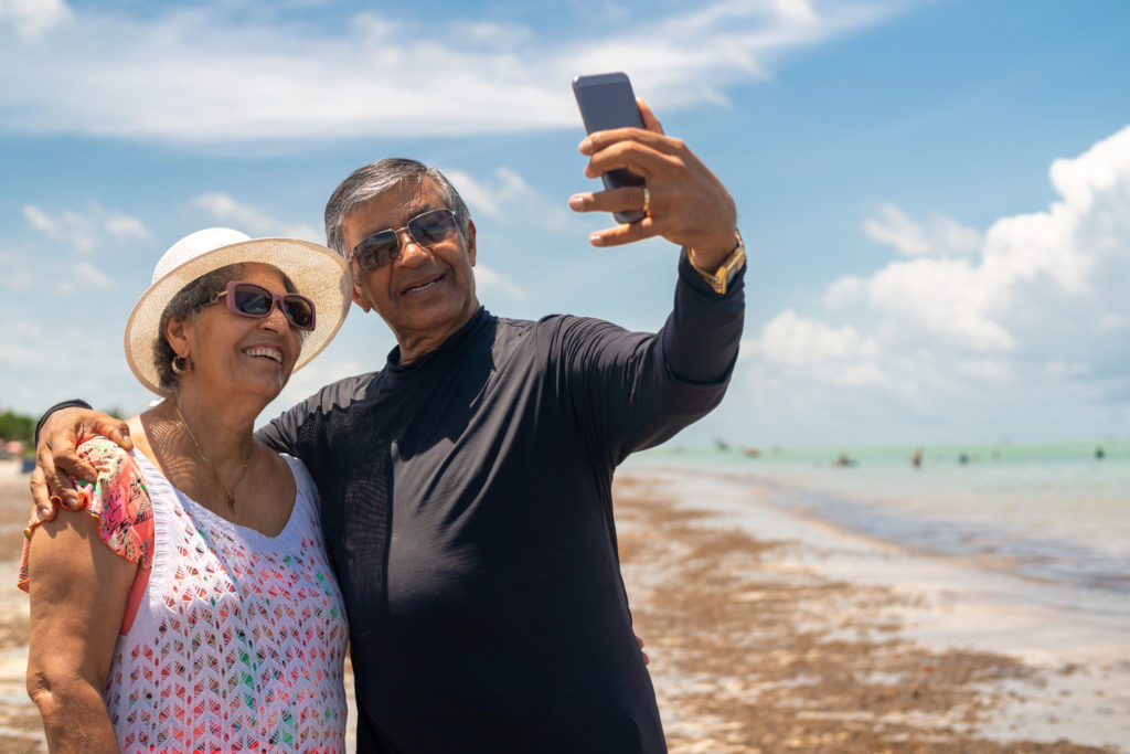 Senior couple taking a selfie on the beach ID: 70111 Couple – Relationship, Mature Couple, Senior Couple, Senior Adult, Selfie