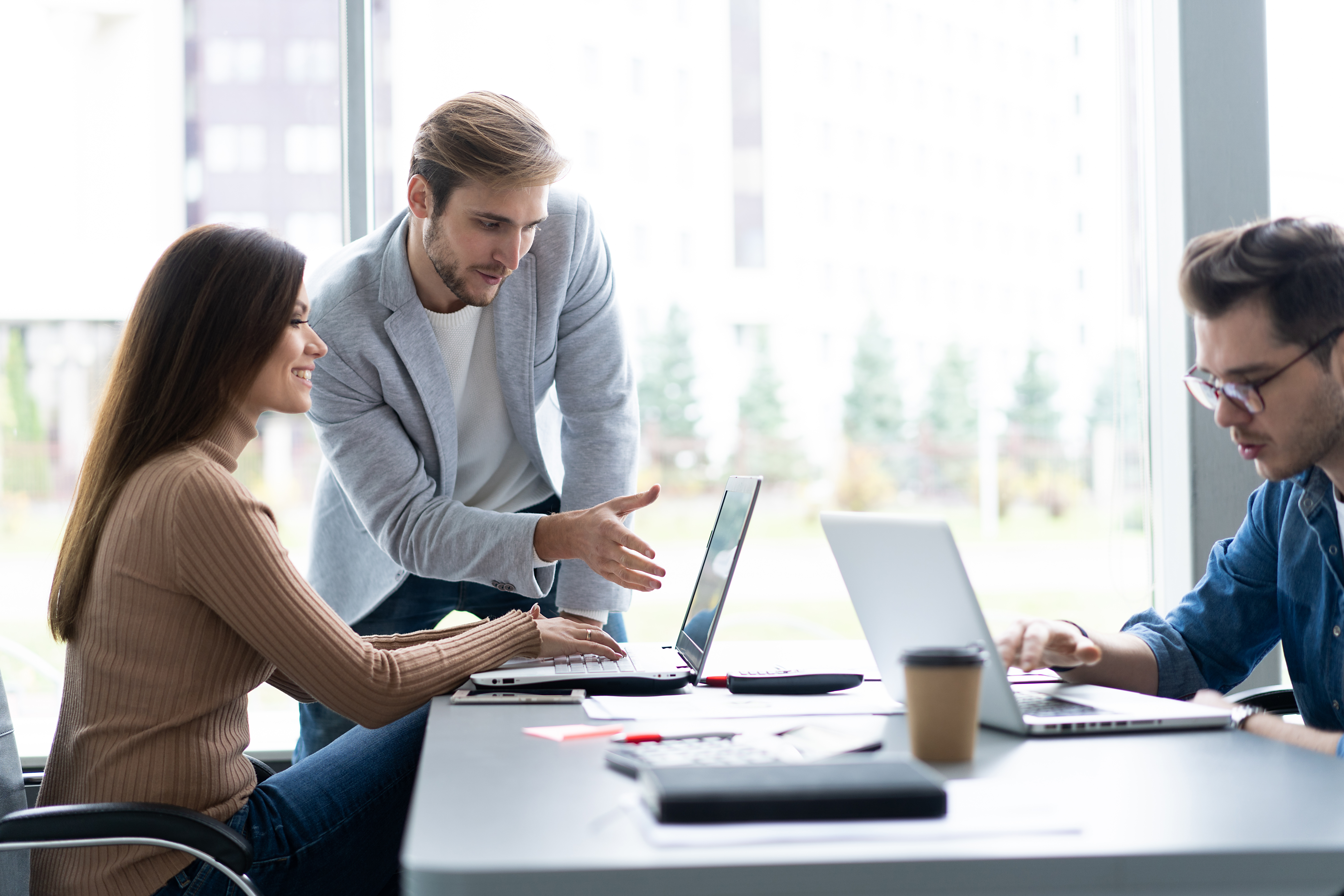 Sharing opinions. Group of young modern people in smart casual wear discussing business while working in the creative office