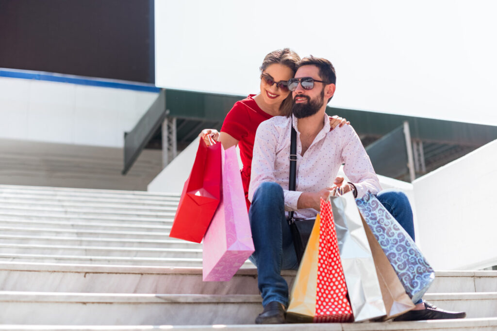 Shoping in the city.Loverly couple having fun on the Macedonian streets.