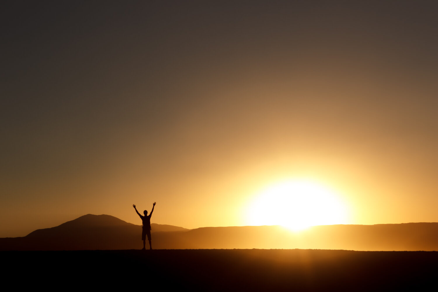 Silhouetted people at the sunset – Laguna Tebinquiche, San Pedro de Atacama, Chile.