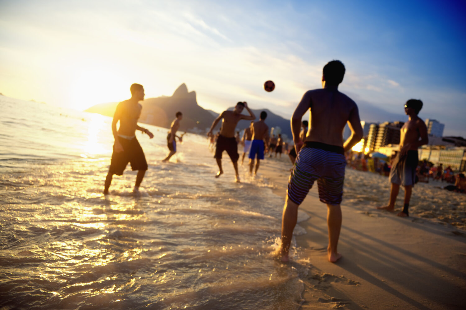 silhouettes de rio sunset de los brasilenos carioca jugando al