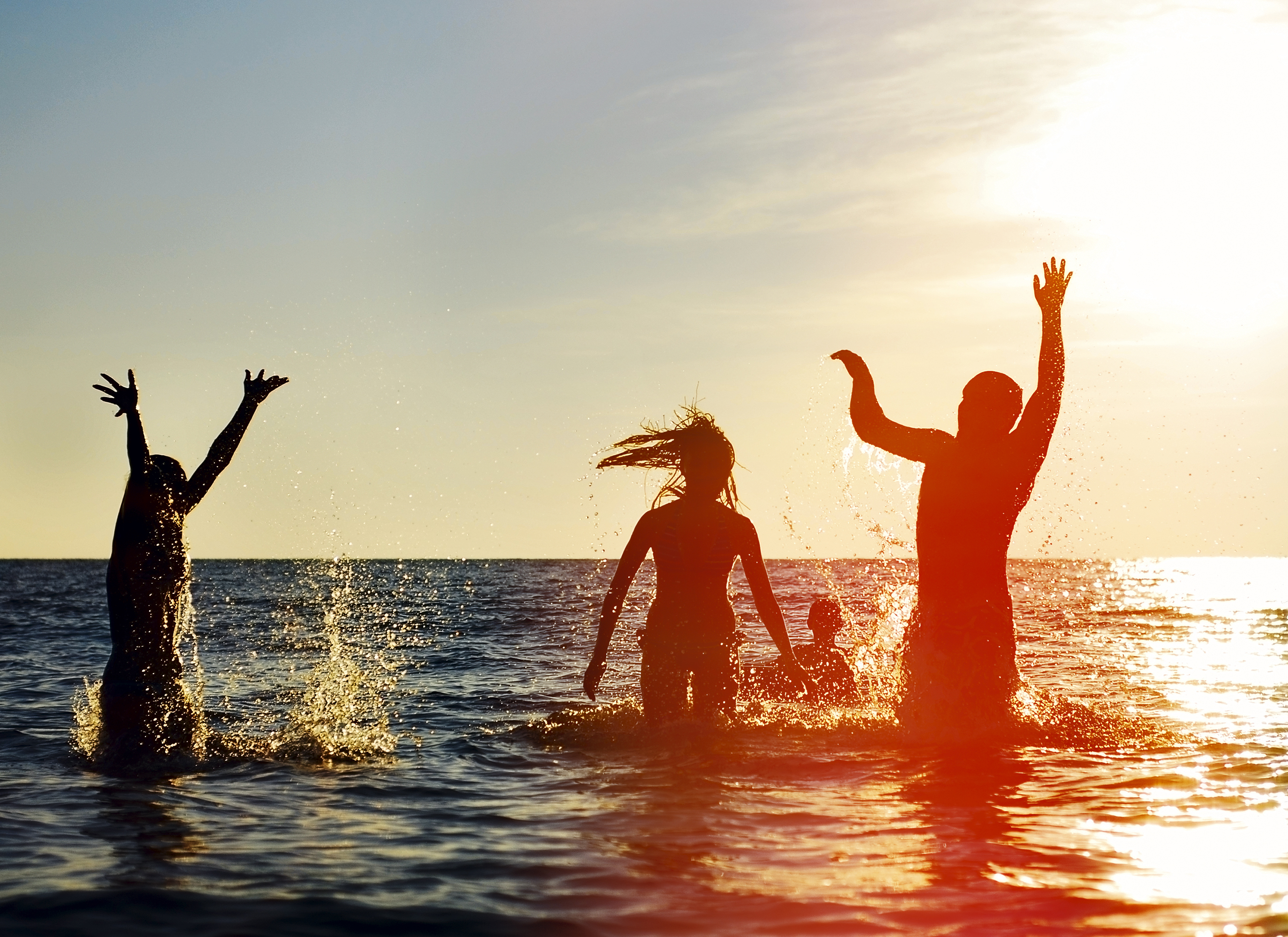 siluetas de jovenes grupos saltando al oceano al atardecer ID: 91153 Siluetas de jóvenes grupos saltando al océano al atardecer