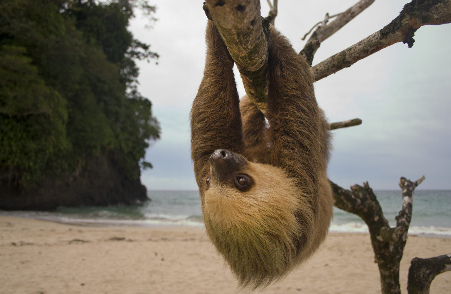 sloth, tres hombres jóvenes colgando en un árbol en la selva tropical de la selva, costa rica, centro América. países latina los llaman osos perezosos