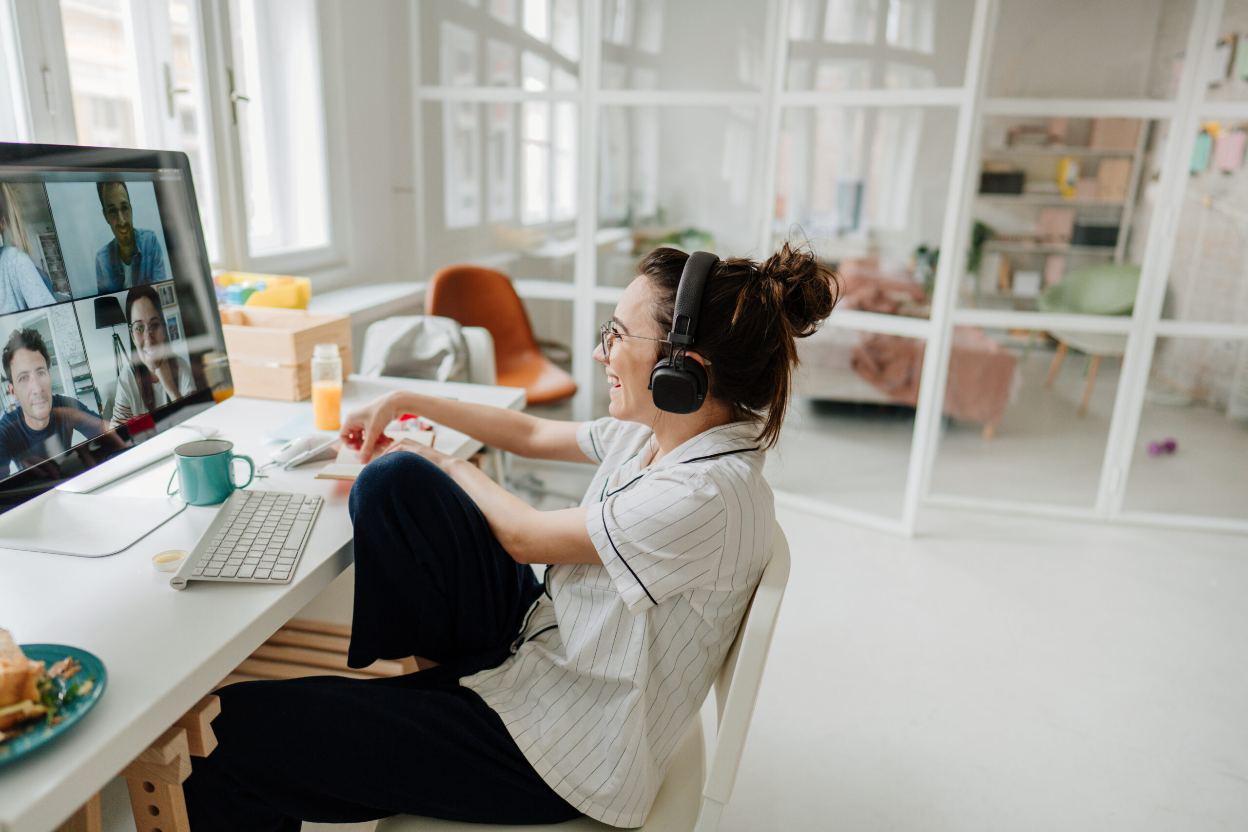 Photo of a young smiling woman having a video call with her friends; the daily routine of a millennial woman.
