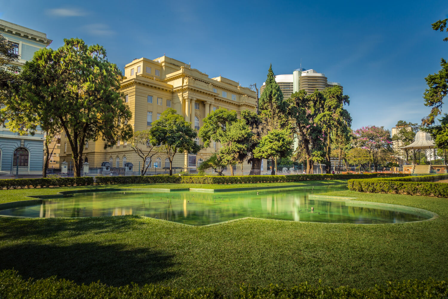 Sol matutino en Praca da Liberdade, y Belo Horizonte, Minas Gerais.