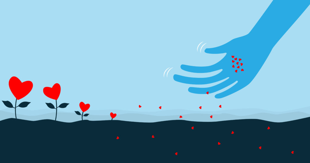 Sowing hearth shape seeds of love.