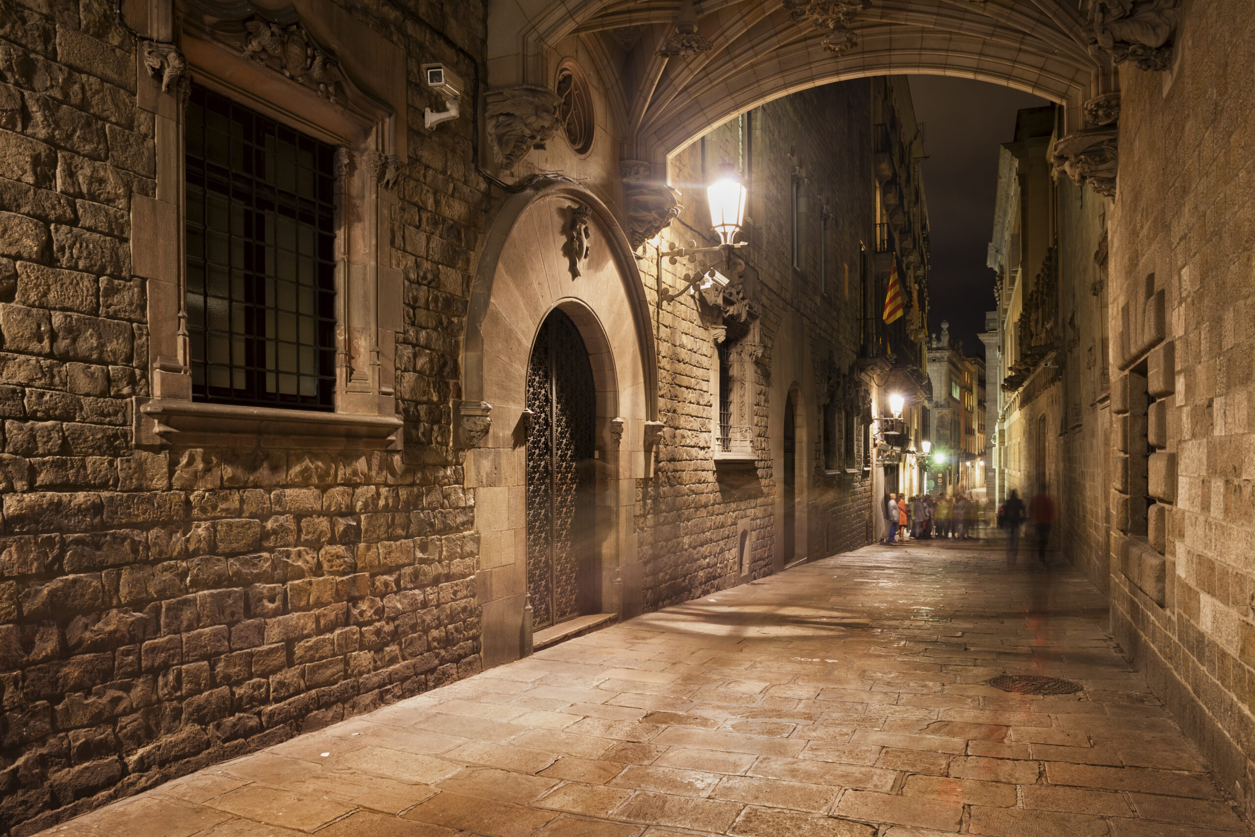 Spain, Barcelona, Barri Gotic at night
