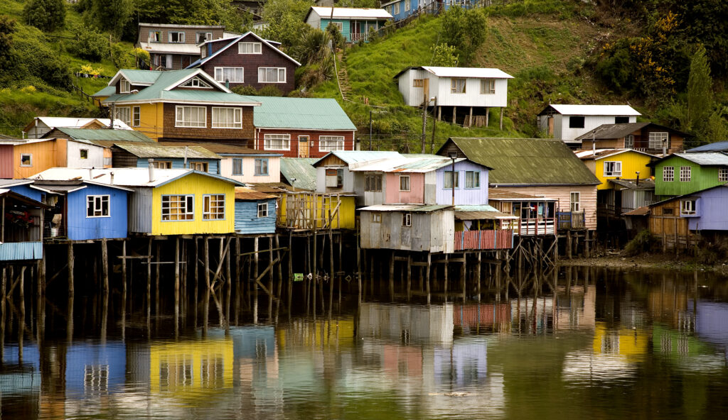 Some of the palafitos that can be seen in the town of Castro on Chiloe Island, Chile.