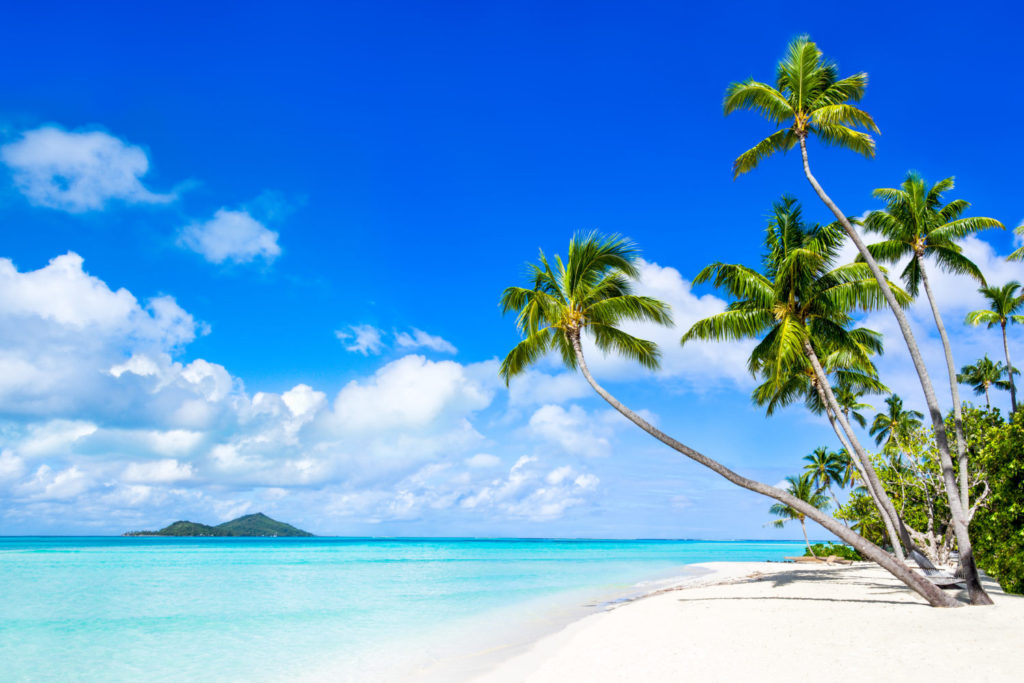 Summer holidays at a beautiful beach with palm trees and turquoise water
