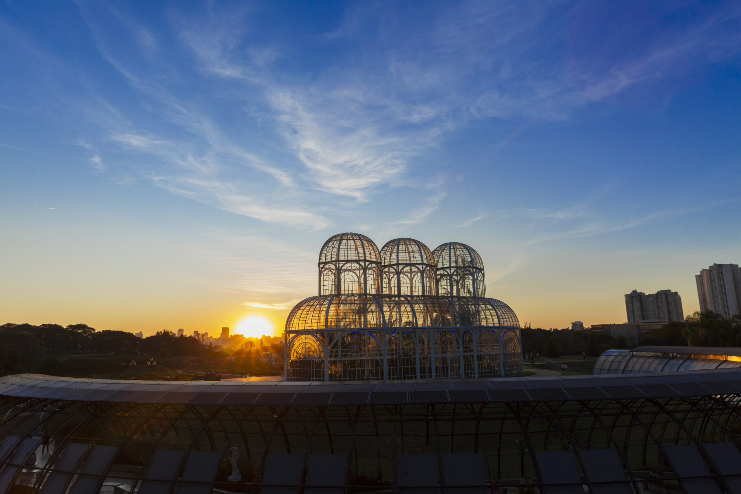 Sunset at the Botanical Garden of Curitiba. ID: 76790 Greenhouse of the botanical garden, the main postcard of curitiba.