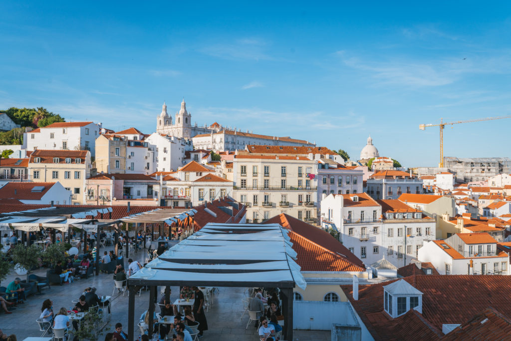 Sunset view of Lisbon city and Alfama District from Miradouro de Santa Luzia