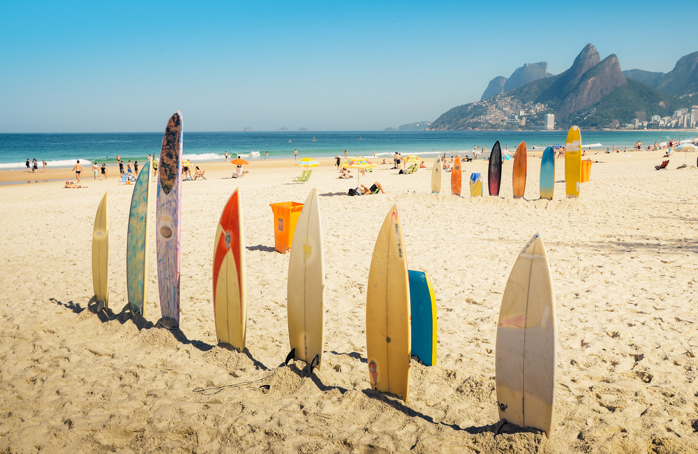 Surfboards en la playa de Ipanema, Rio de Janeiro.