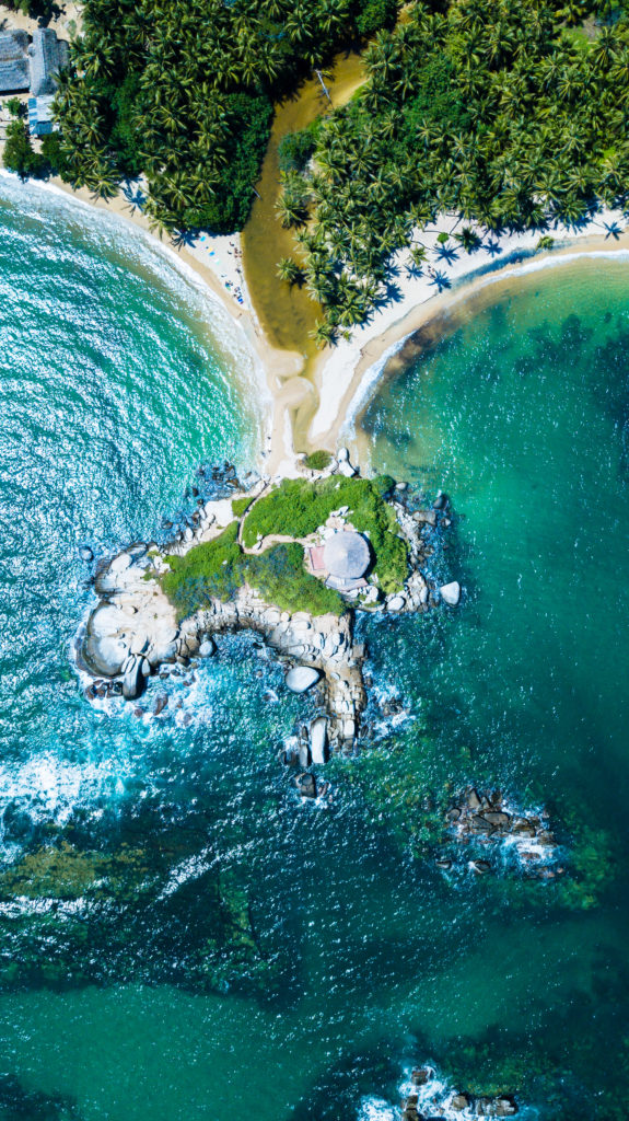 The coast line of Colombia’s northern ocean. An aerial view of Cabo San Juan del Guia in Tayrona National Park, Colombia ID: 32074