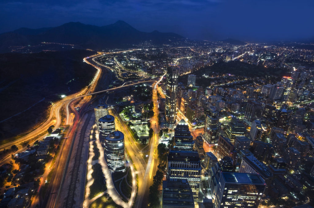 The skyline of Santiago de Chile by night.