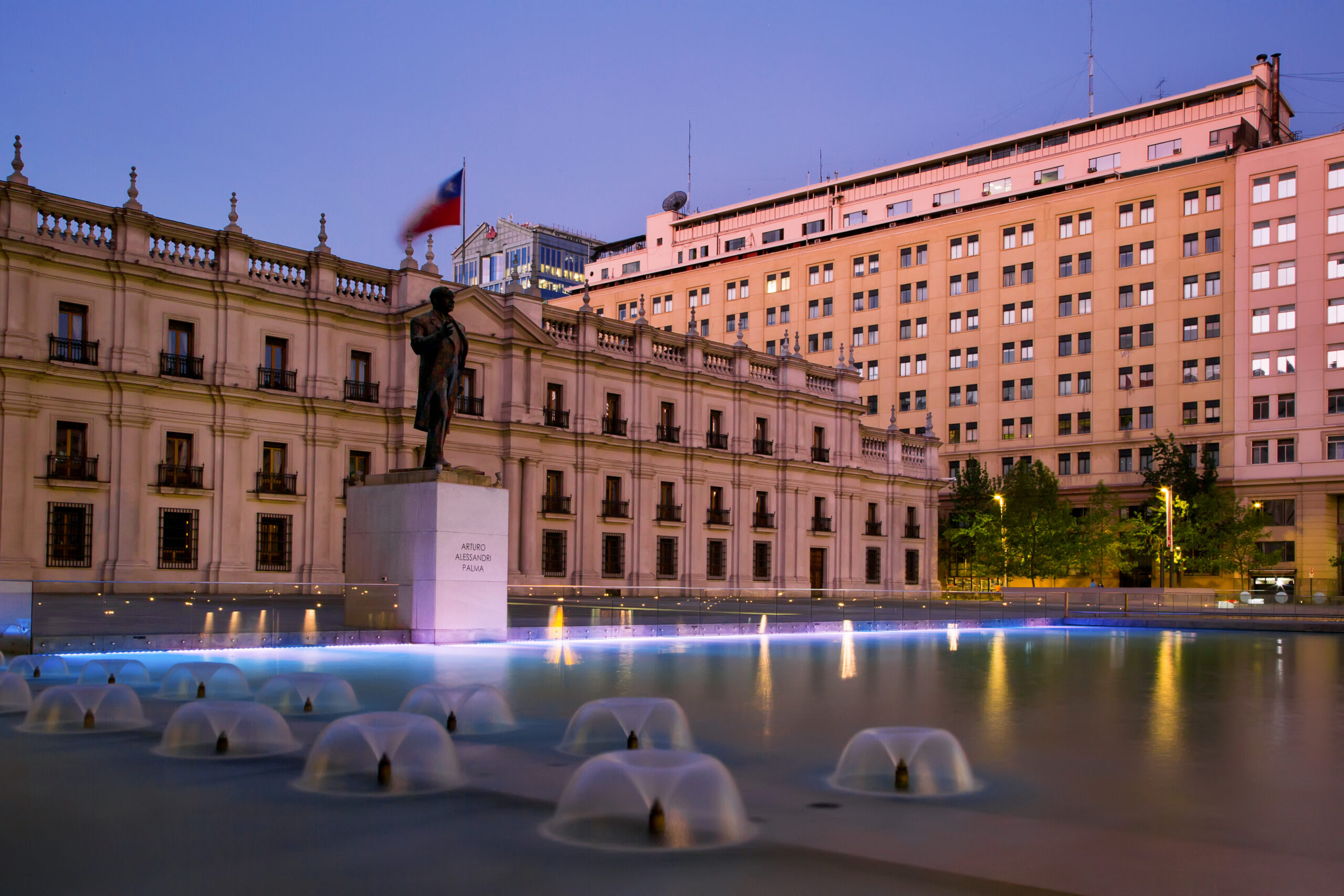 Palacio de La Moneda is the seat of the President of the Republic of Chile. It also houses the offices of three cabinet ministers: Interior, General Secretariat of the Presidency and General Secretariat of the Government. It is built in a pure neoclassical style with Roman Doric influences. “n