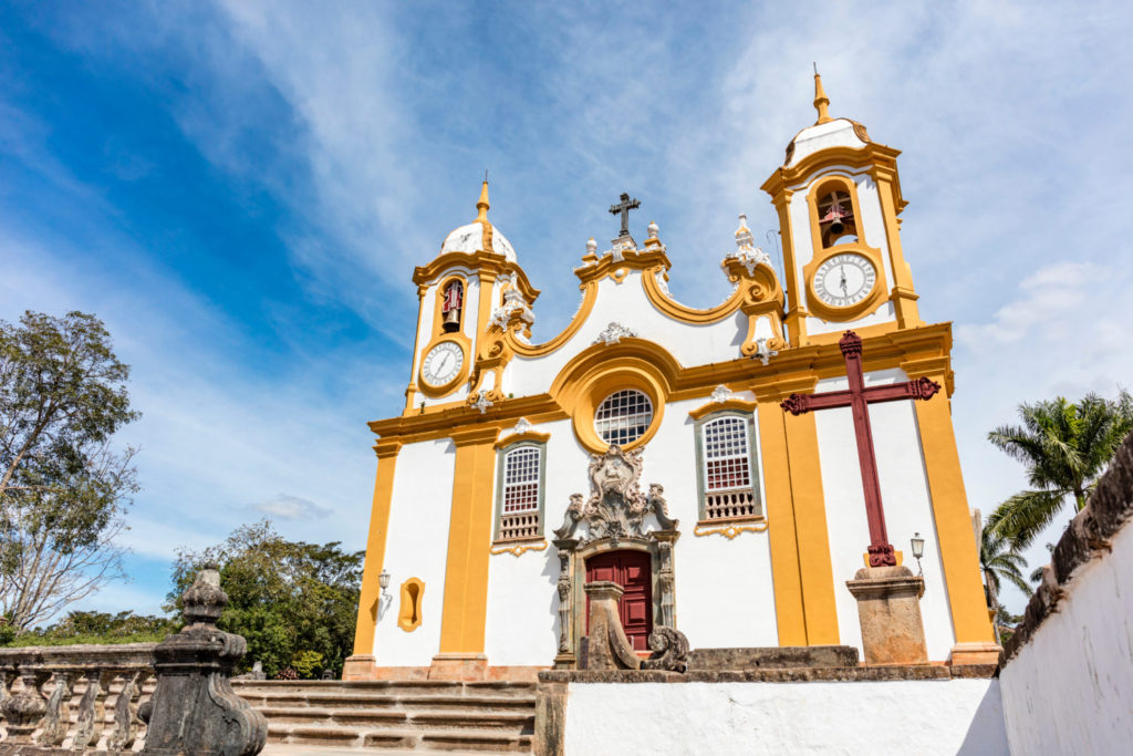 Tiradentes Mother Church, Santo Antonio Catholic Church seen in the morning with blue sky in city Tiradentes, Minas Gerais, Brazil