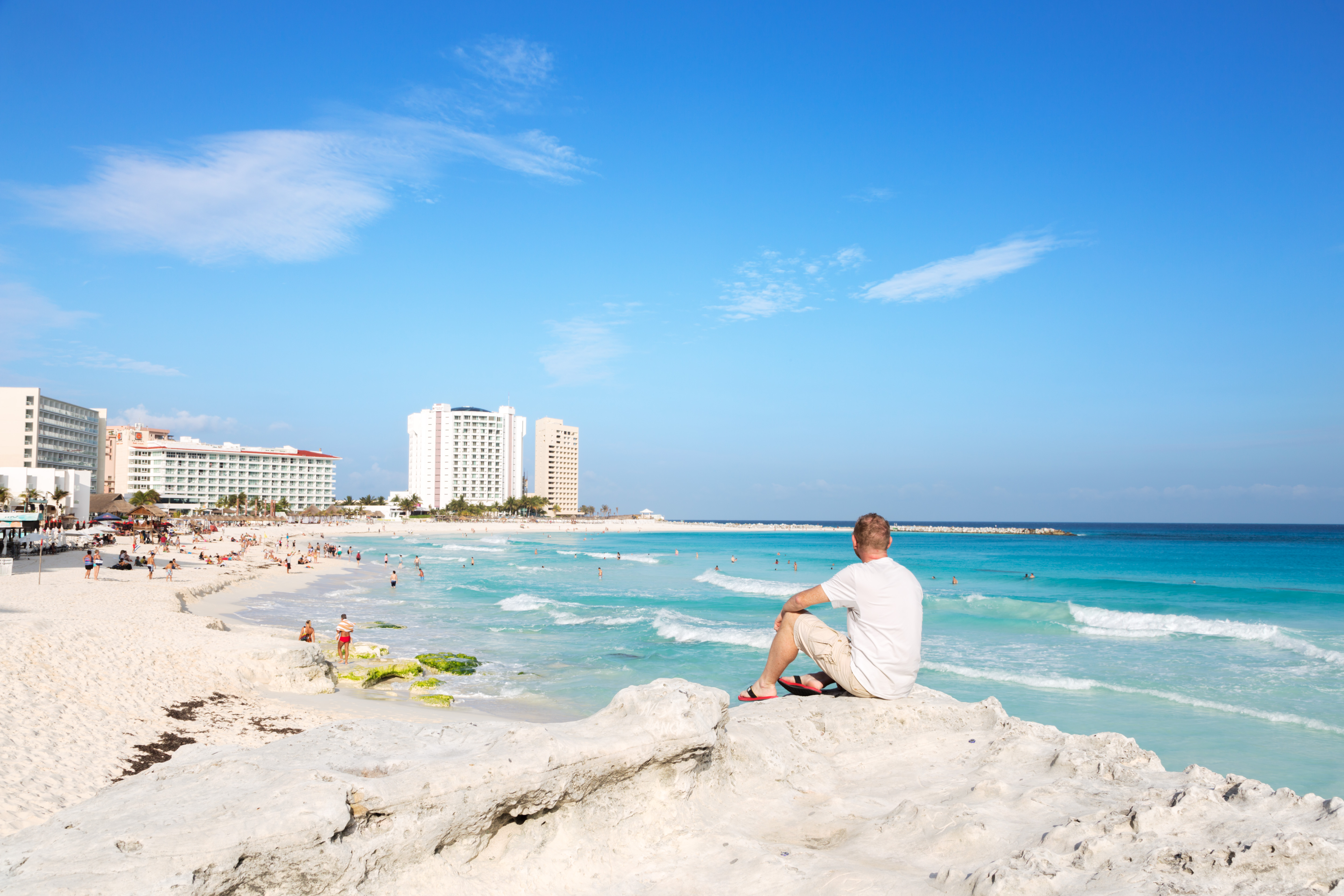 Tourist looking at tropical beach, Cancun, Mexico