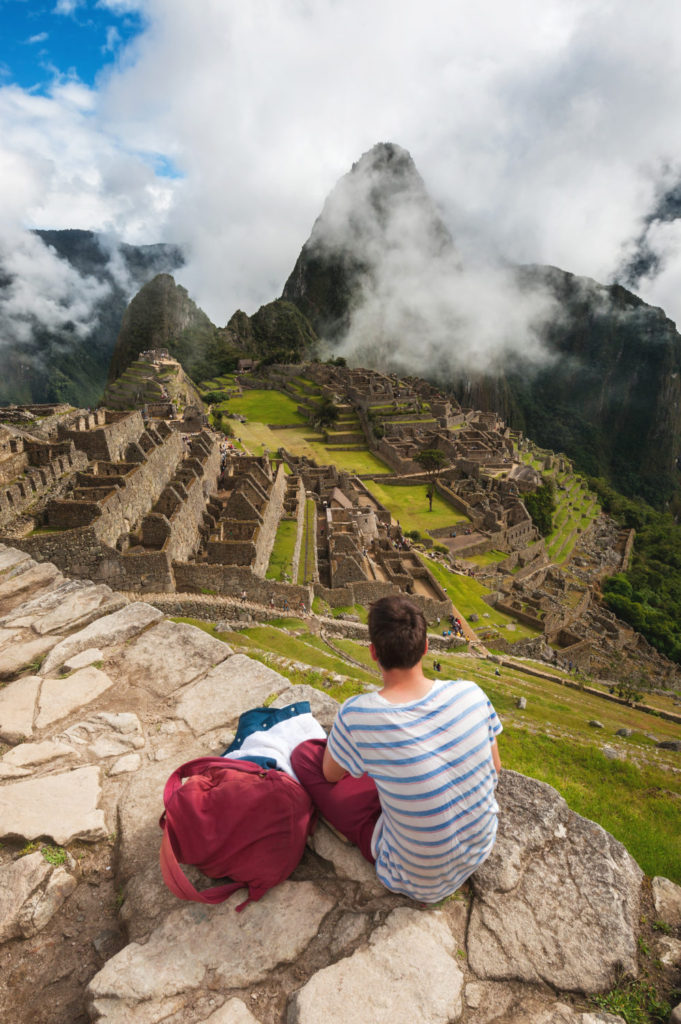 Tourist looking over Machu Picchu, Peru