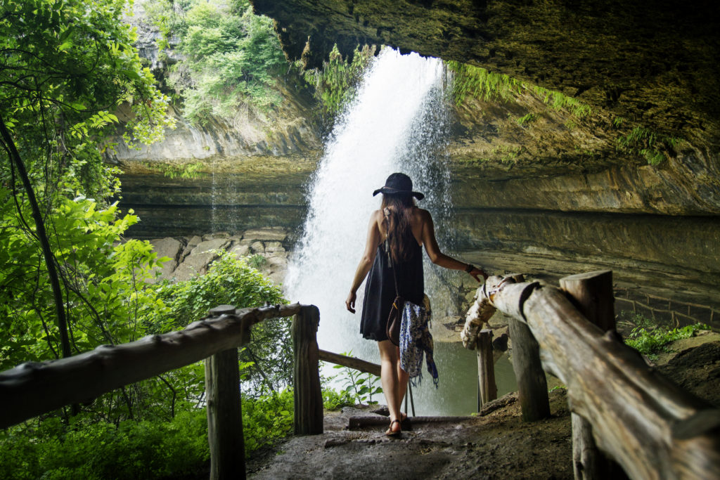 Tourist visiting a waterfall