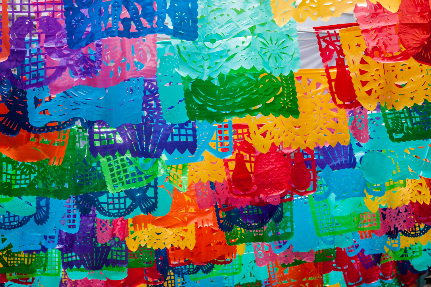 traditional mexican paper bunting decoration celebratory flags in mexico.