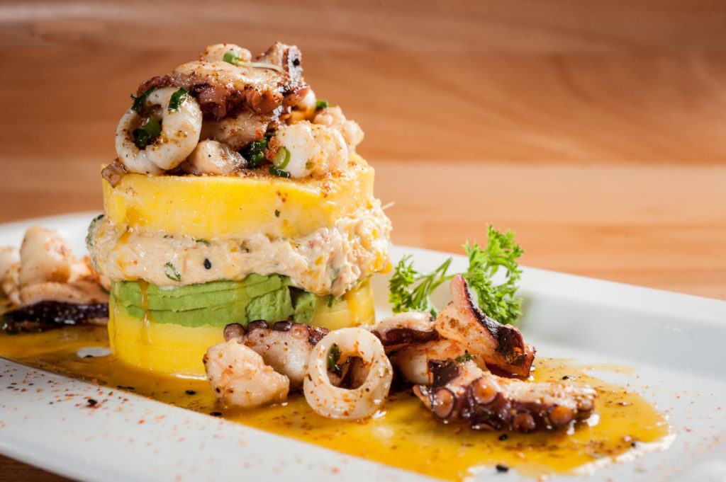 traditional peruvian dish called causa made of mashed potato with