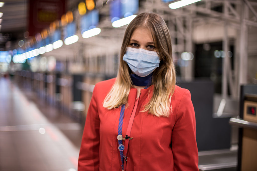 Tripulante con mascarilla en aeropuerto, versión 4.