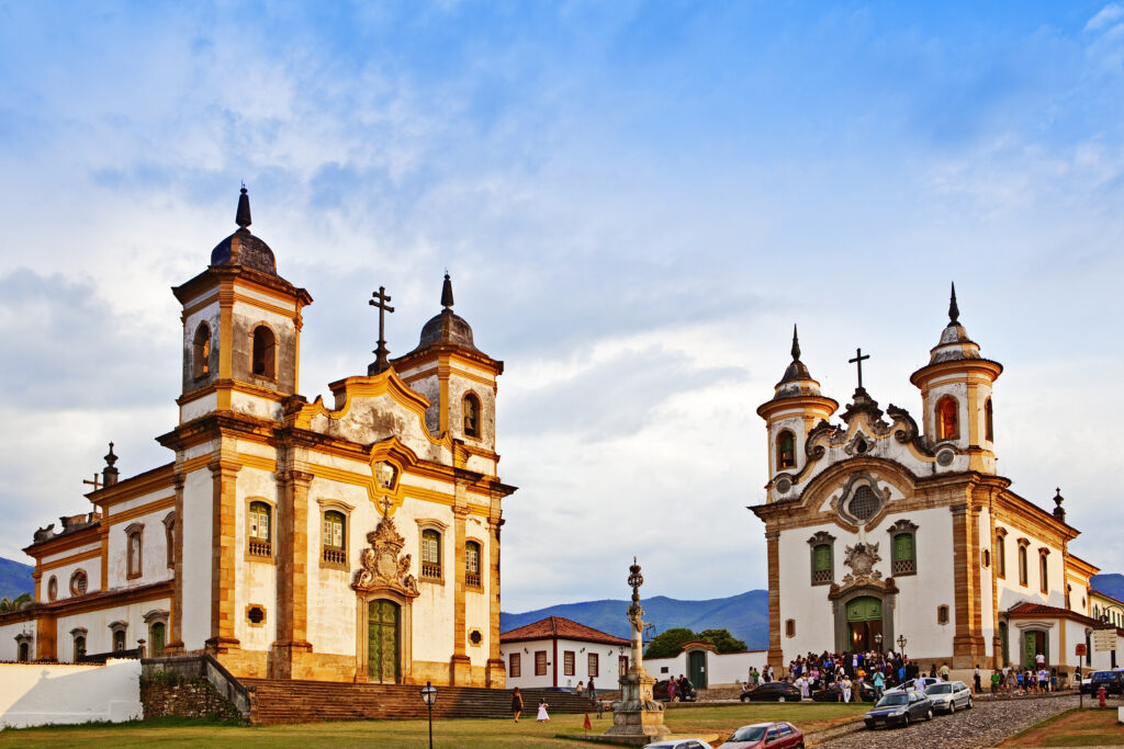 The churches of Sao Francisco de Assis and Nossa Senhora da Assuncao , Mariana, Minas Gerais state, Brazil, South America