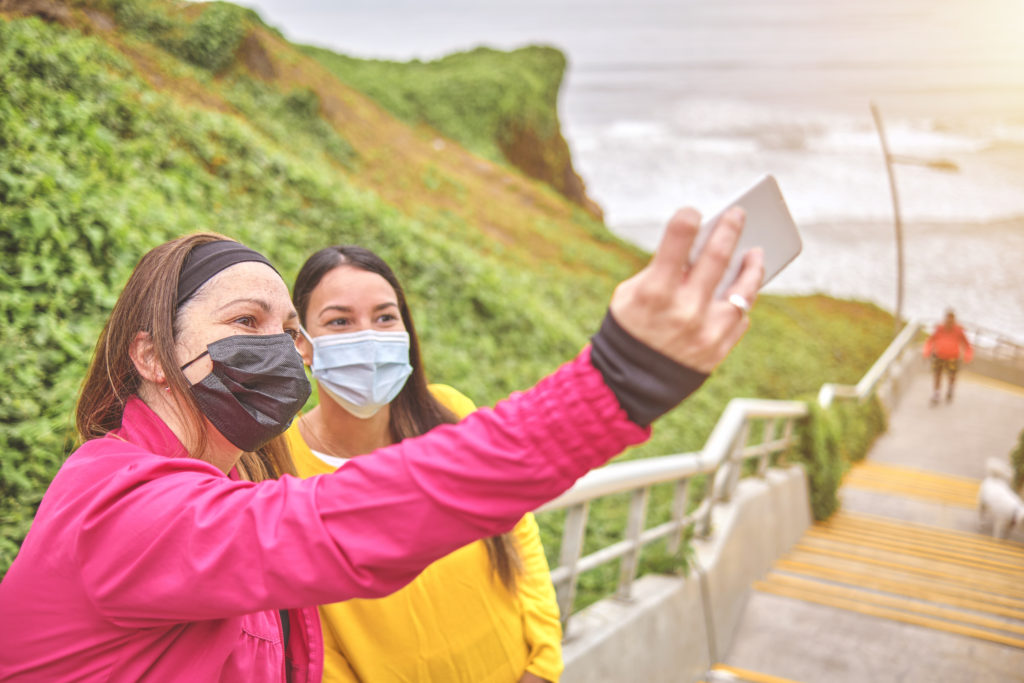 Two Young Athletic Women Taking A Picture After Running In A Park, Best Friends Training Together ID: 68949 Photo taken in Lima, Peru