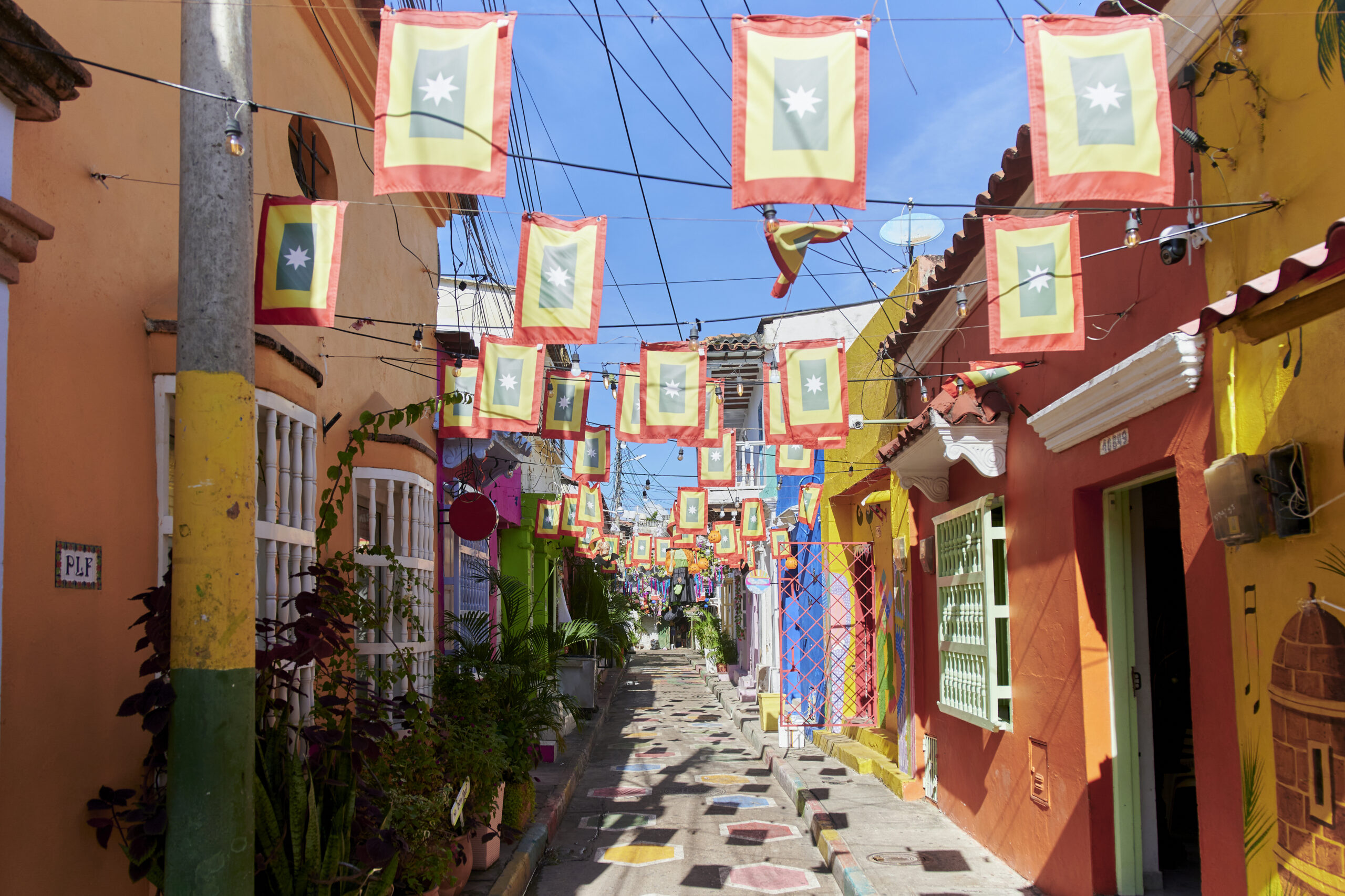 Typical street of the Getsemani neighborhood in Cartagena de Indias
