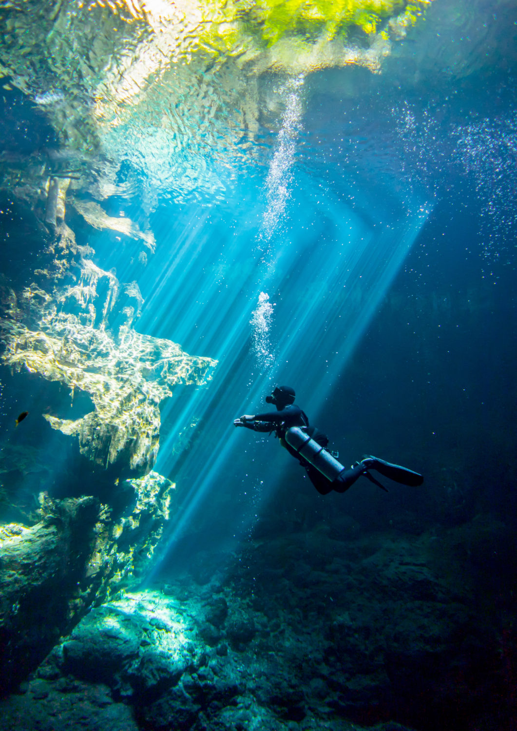 Underwater el Pit Cenote Yucatan Mexico