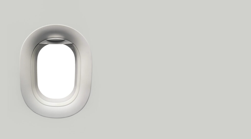 Ventana del avión y lugar de texto