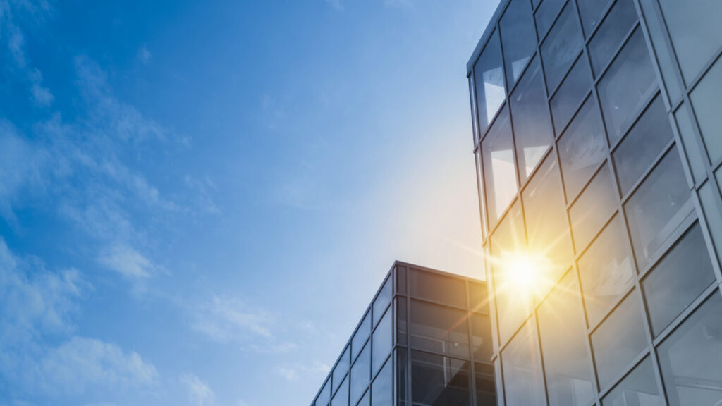 ventanas de skyscraper business office con cielo azul edificio corporativo