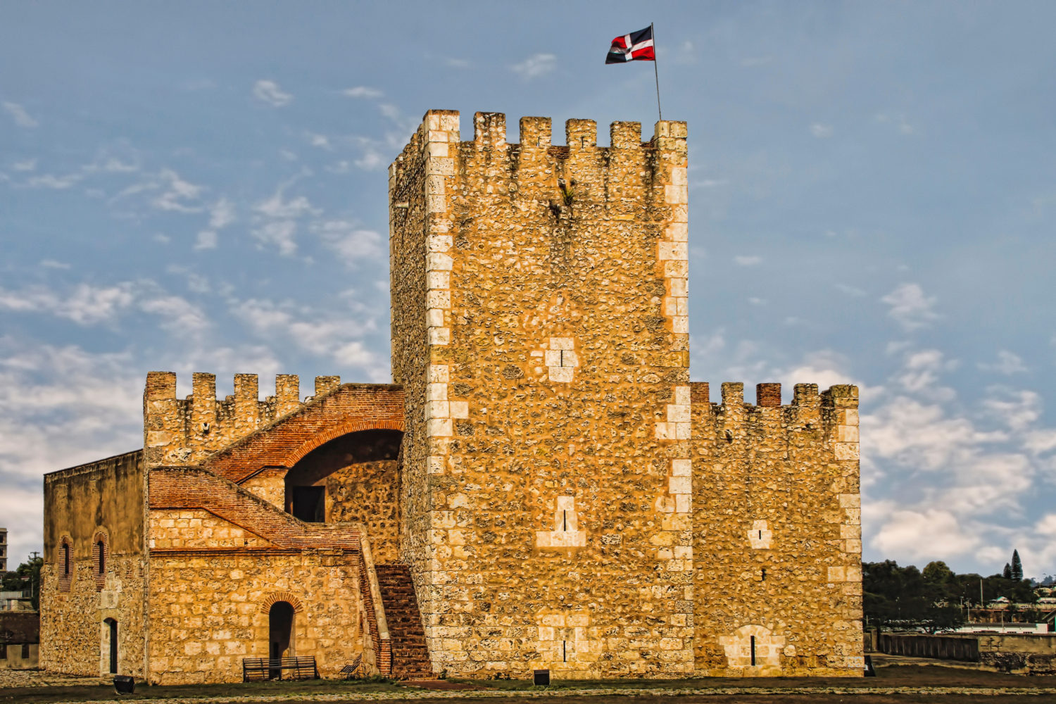 View of Historic Colonial Era Fortress Tower (Ozama Fortress, Santo Domingo, Dominican Republic).
