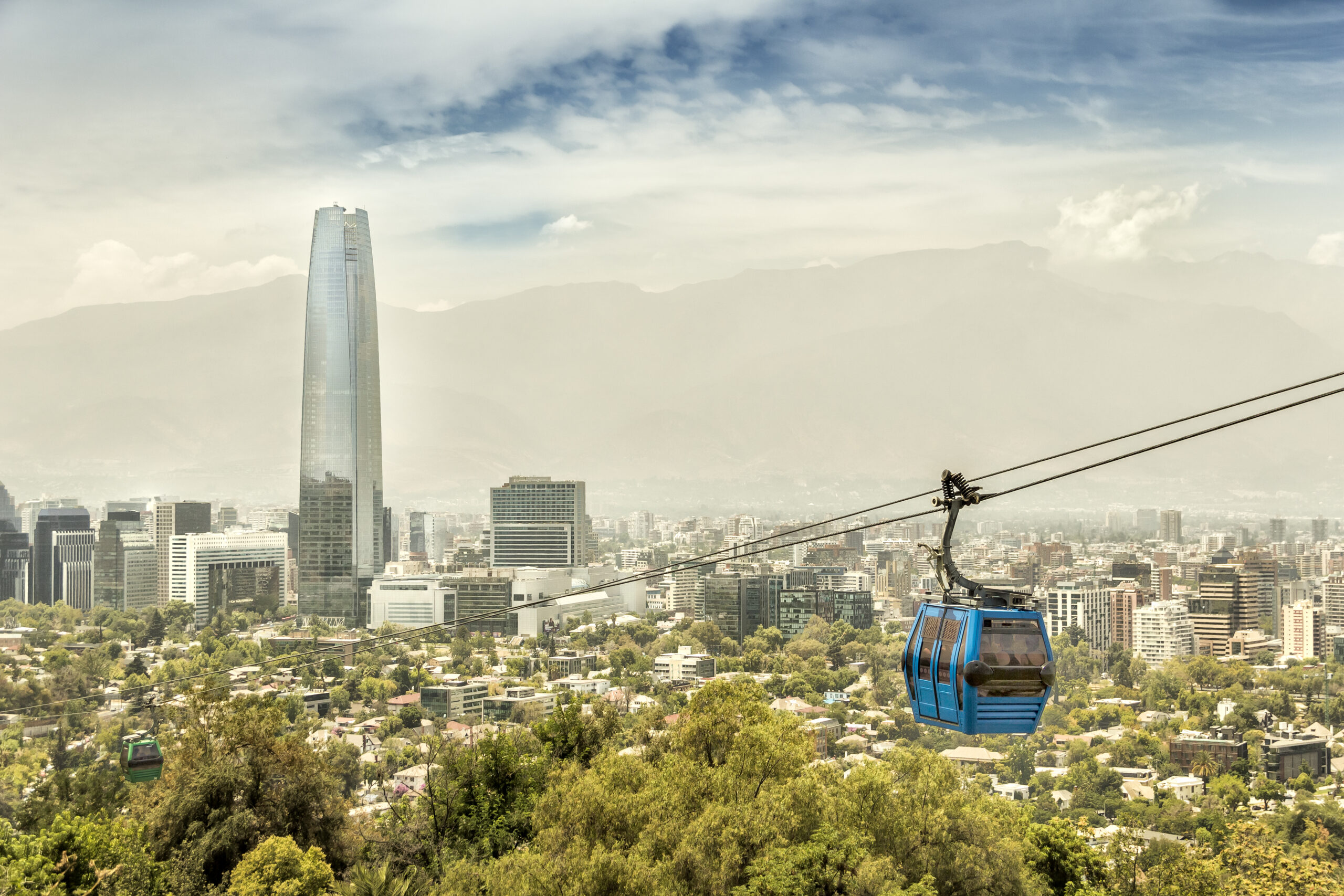 Skyline of the city of Santiago de Chile, the capital of Chile.