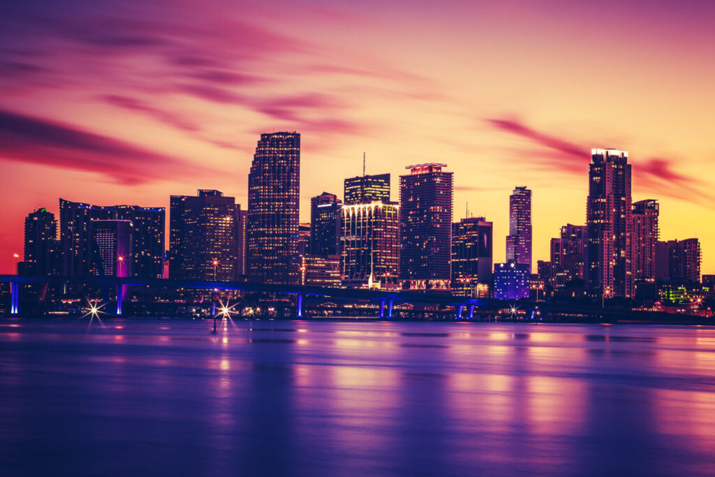 vista de miami al atardecer procesamiento fotografico especial ee uu