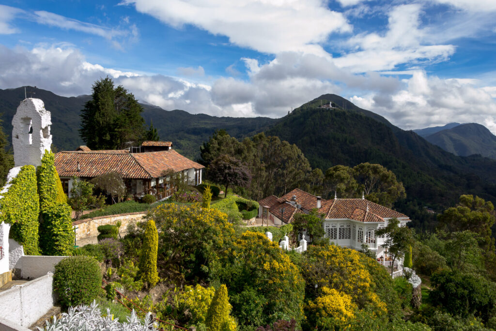Vista desde Monserrate, una montaña alta que domina el centro de la ciudad de Bogotá, la capital de Colombia. Un día hermoso y soleado