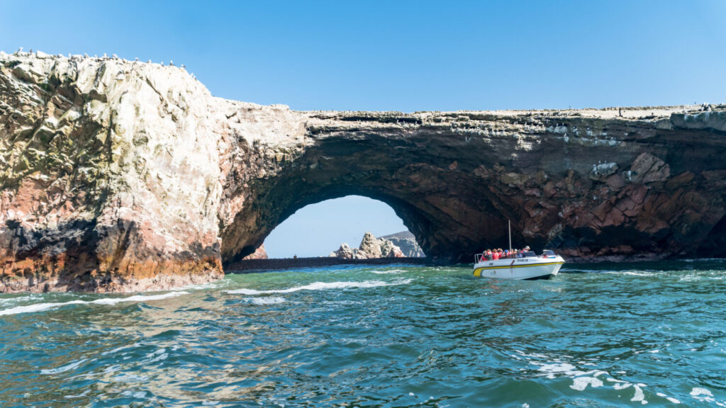 Vista panorámica desde el Parque Nacional de Paracas en Perú con diferentes tipos de aves. Ica, Perú