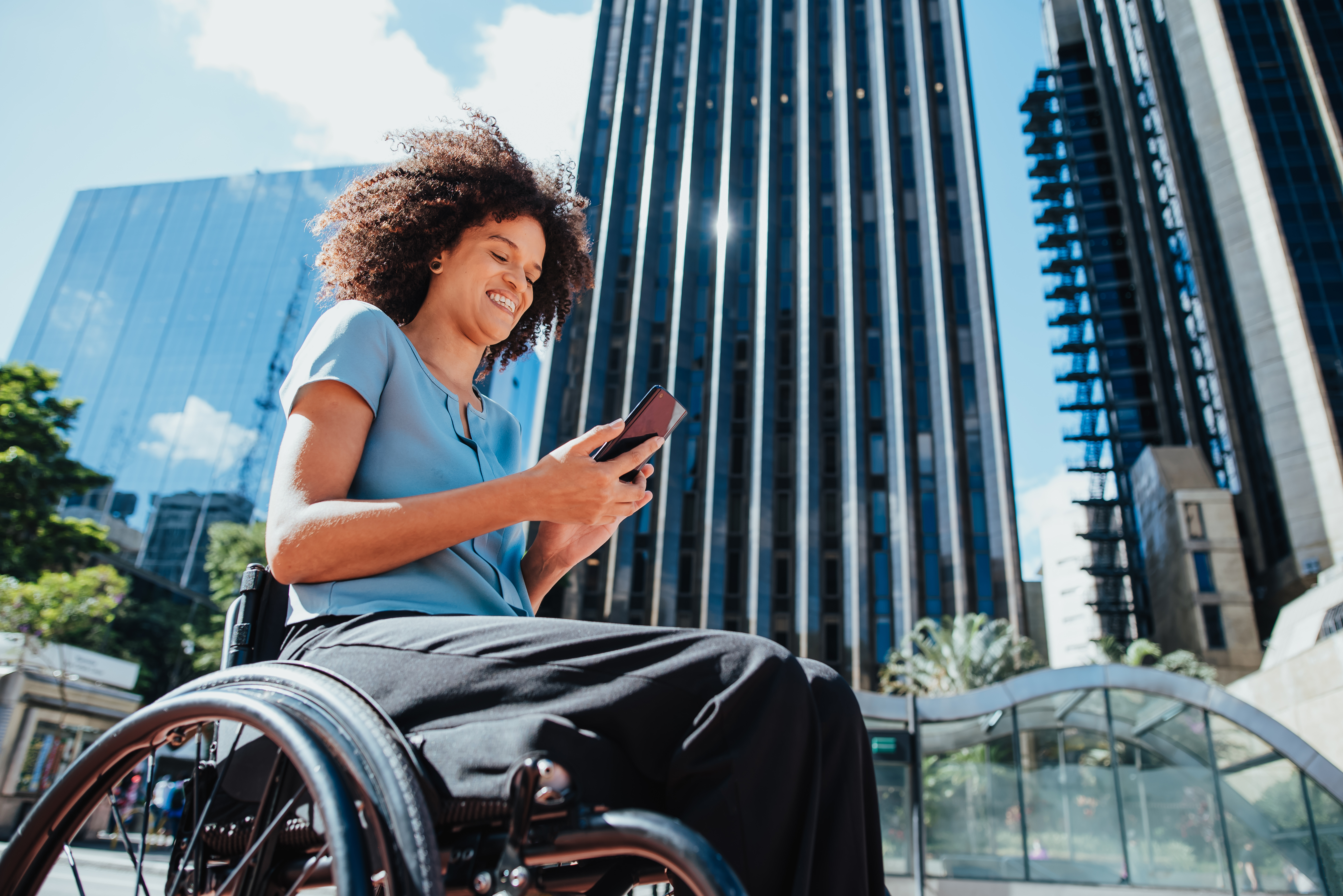 Wheelchair woman on the street using smartphone ID: 68755 Wheelchair woman on the street using smartphone