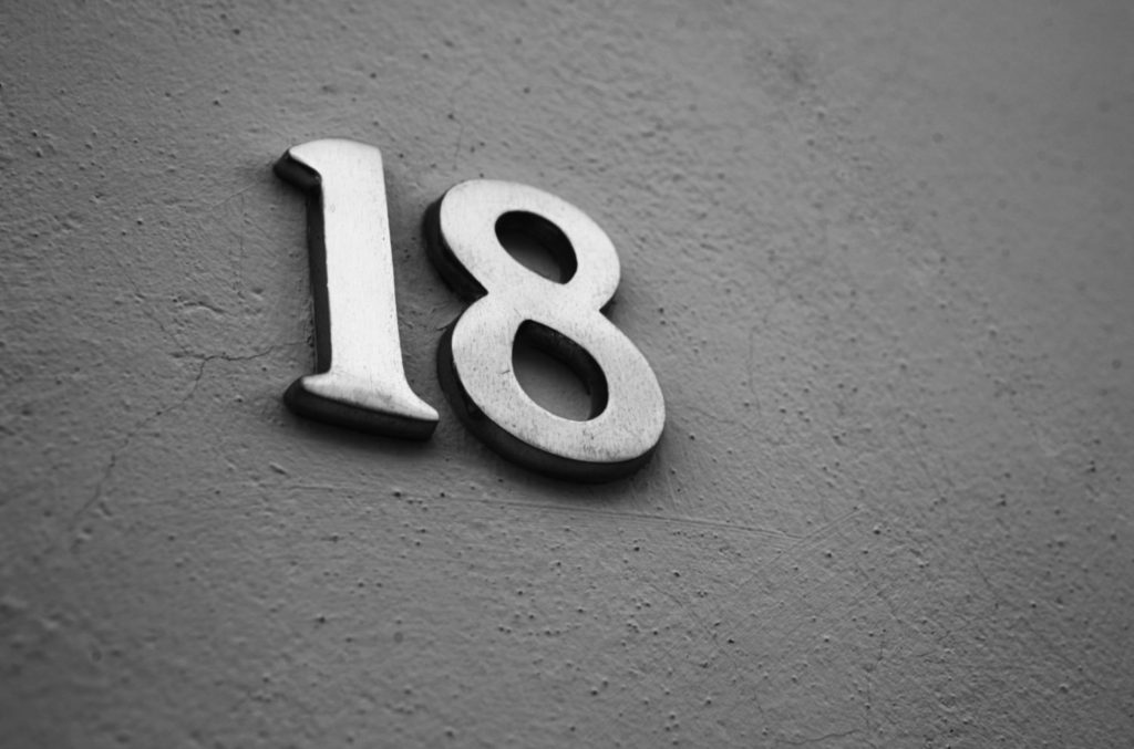 white metallic number 18 hanging of a whitewashing wall extremadura
