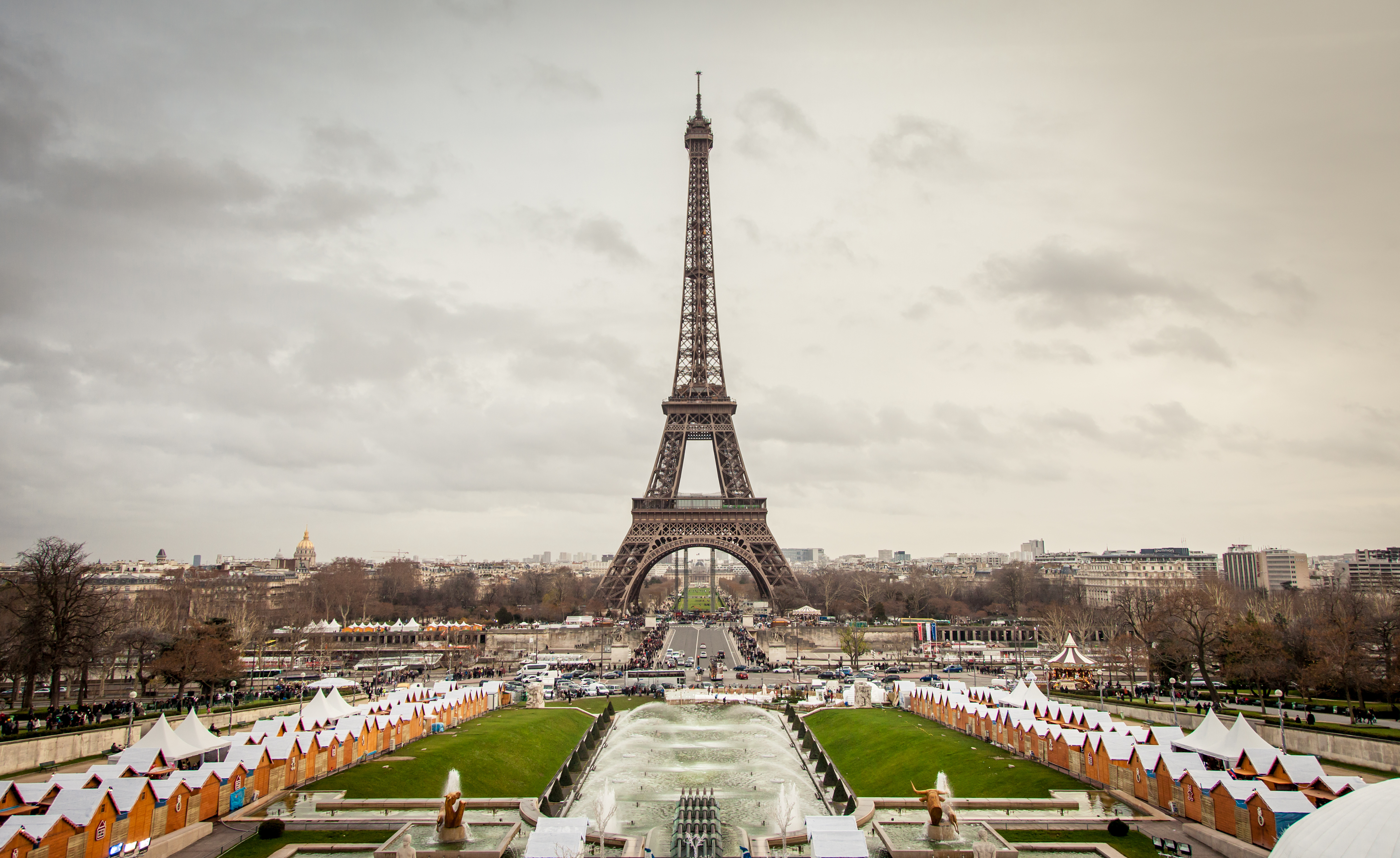Wide-angle View Of The Eiffel Tower In Winter