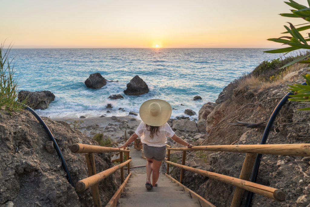 Woman at Kavalikefta Beach, Lefkada, Greece.